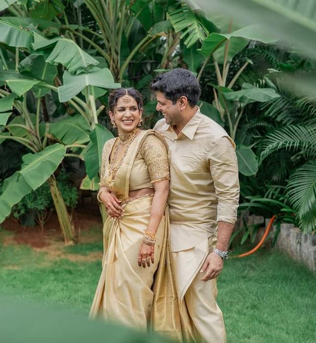 संयुक्ता और अनिरुद्ध की शादी बेहद सादगी और पारंपरिक माहौल में संपन्न हुई। संयुक्ता ने गोल्डन कलर की खूबसूरत साड़ी के साथ टेम्पल ज्वेलरी पहनी, जो उनकी दक्षिण भारतीय लुक को और निखार रही थी। अनिरुद्ध ने गोल्डन-टोन शर्ट और पारंपरिक धोती पहनकर अपने वेडिंग लुक को पूरा किया। उनकी शादी की तस्वीरें इंटरनेट पर आते ही तेज़ी से वायरल हो गईं, फैंस ने कमेंट सेक्शन में तमाम शुभकामनाएं और दिल वाले इमोजी भेजे।