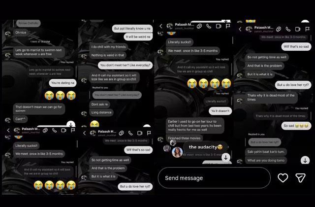 कुछ प्राइवेट चैट के कथित स्क्रीनशॉट वायरल होने के बाद उनके निजी जीवन और स्मृति मंधाना के साथ उनकी पोस्टपोन हुई शादी को लेकर कई तरह की चर्चाएं शुरू हो गई हैं। ये स्क्रीनशॉट एक अनजान महिला द्वारा शेयर किए गए, जिसके बाद Reddit और Instagram पर बहस का दौर बढ़ गया। हालांकि इन स्क्रीनशॉट्स की सत्यता की पुष्टि नहीं हुई है, फिर भी इस मामले ने पलाश को सवालों के घेरे में खड़ा कर दिया है।
